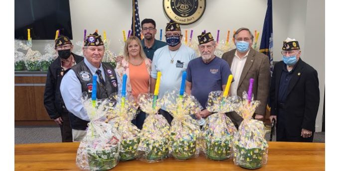 Pictured: (Front row, l to r) Area A Commander Post 329 John Richardson, Sheryl Ruiz, Member Ollie Billiot, Member Ronnie Richoux, District Attorney Charles Ballay, Rudy Sampey (Back row, l to r) Chaplin Emmitt Smelser and Bryan Ruiz.